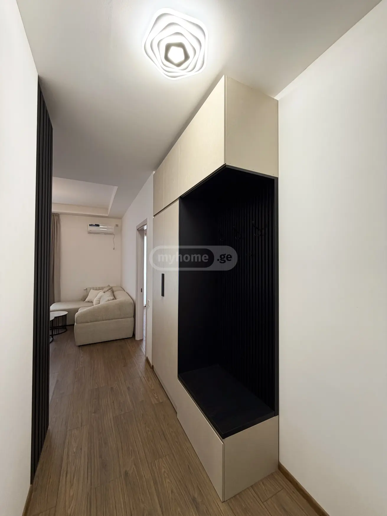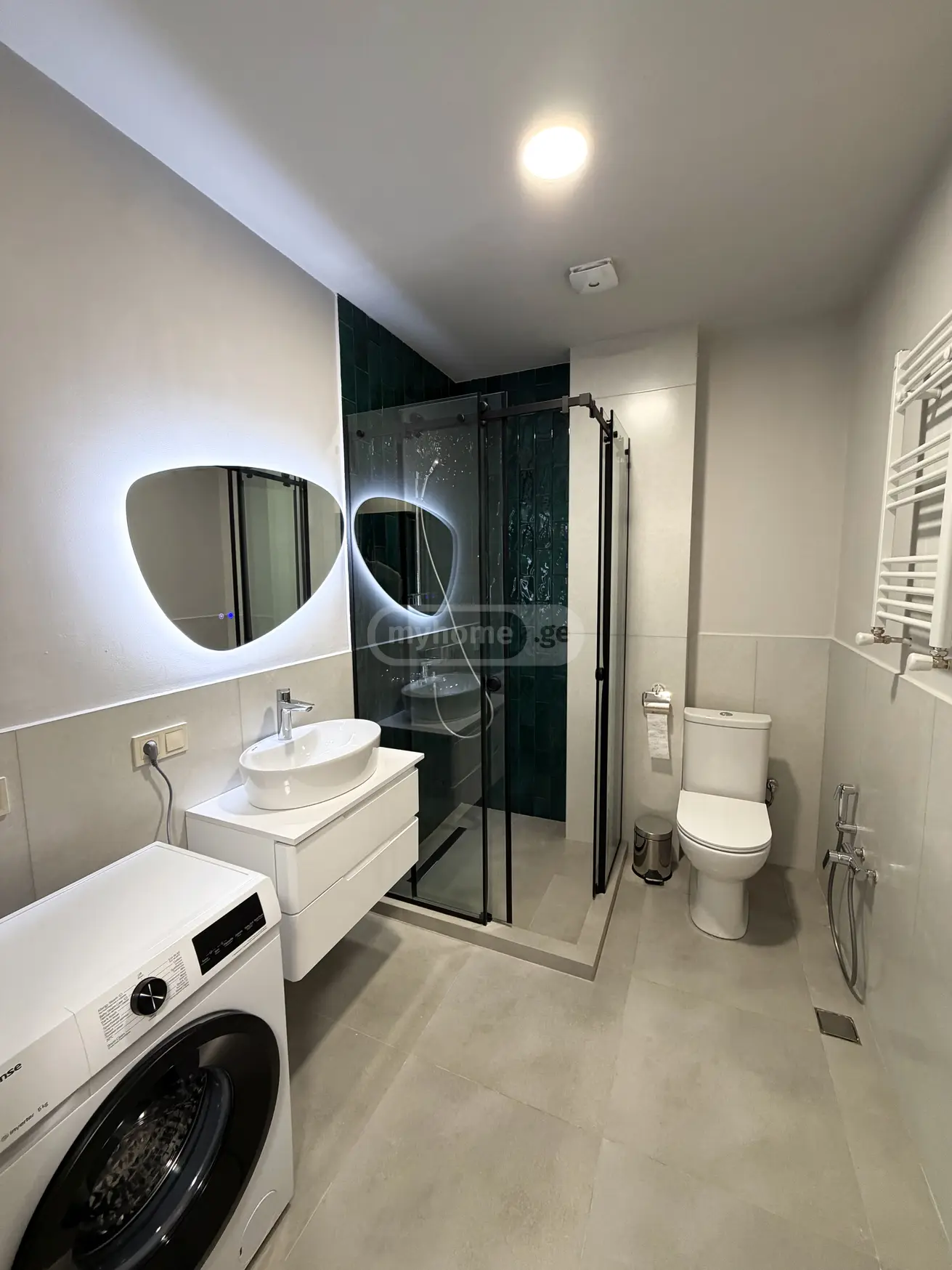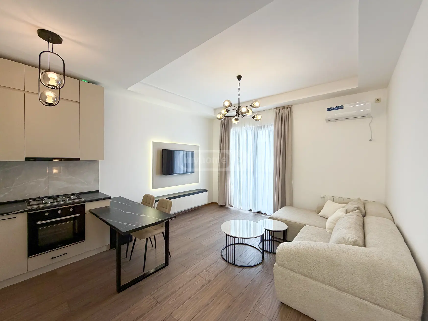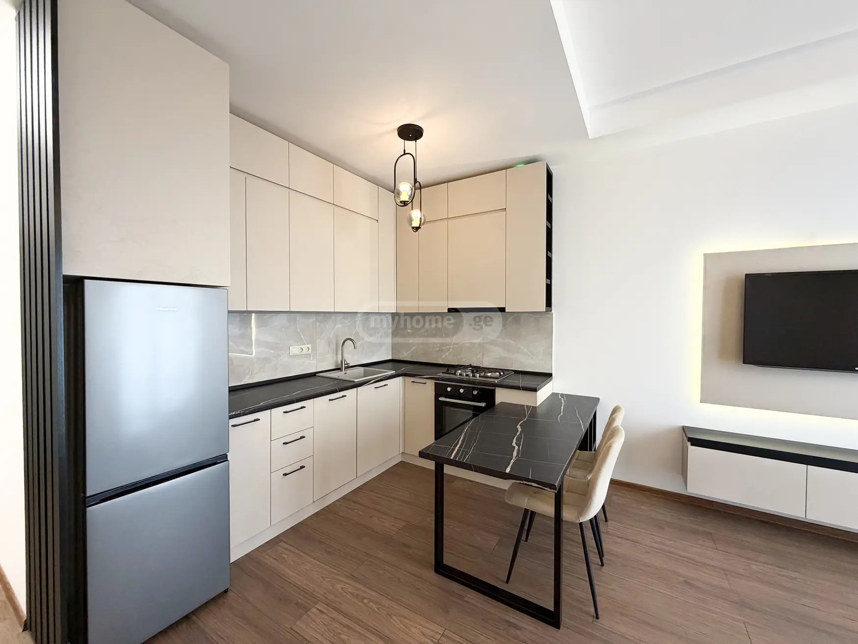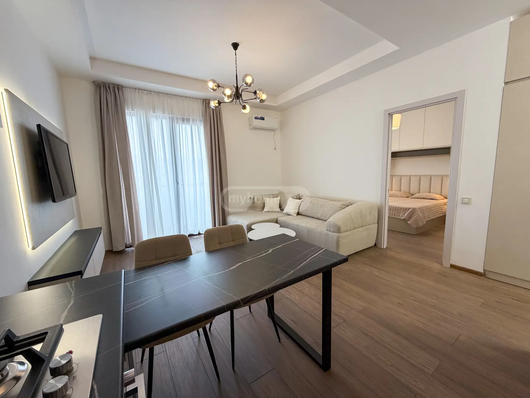ბინა მოიცავს ცალკე საძინებელს, ნათელ მისაღებ ოთახს, სრულად აღჭურვილ სამზარეულოს, სველ წერტილსა და აივანს ულამაზესი ხედით. აღჭურვილია სარეცხი მანქანით, ჭურჭლის სარეცხი მანქანით, მაცივრით, ტელევიზორით და ყველა იმ ტექნიკითა და ავეჯით, რაც ფოტოებშია წარმოდგენილი.